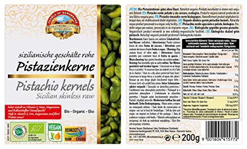 Specification: Biologische Siciliaanse groene pistachenoten, gepelde pistachenoten zonder vel 200 g rauwe, ongebrande, ongezouten rauwe voeding met natuurlijke melatonine