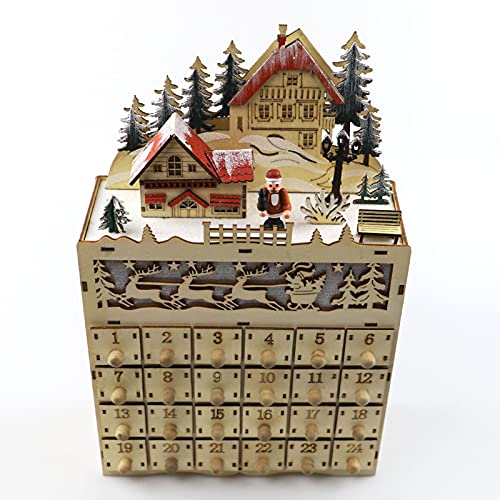 Specification: Christmas Wood Advent Kalender Herbruikbare Advent Kalender Van LED-verlichte Dorpshuis Santa Claus Countdown Ornament Met Laden Doos Decor Gift DIY Kerstkalender