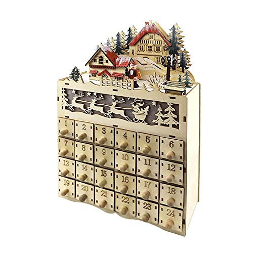 Christmas Wood Advent Kalender Herbruikbare Advent Kalender Van LED-verlichte Dorpshuis Santa Claus Countdown Ornament Met Laden Doos Decor Gift DIY Kerstkalender