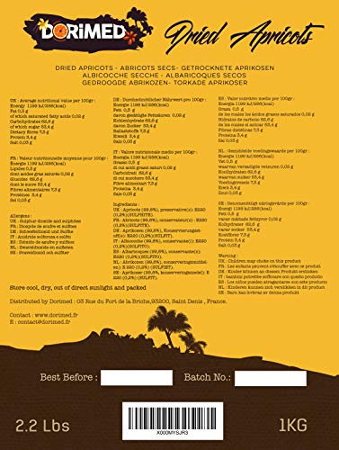 Dorimed – Gedroogde abrikozen, groot formaat, zonder stenen, hersluitbare zak 1 Kg