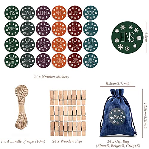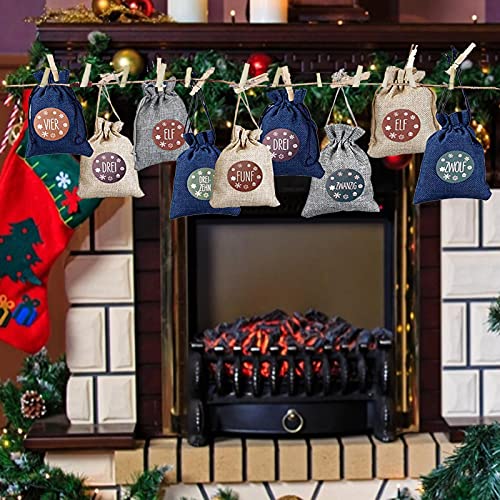 Specification: Kerst Adventskalender Tassen, DIY Adventskalender Kit 24 PCS, 2021Countdown Opknoping Adventskalender Gift Jute Zakken, 2021 Adventskalender, Om Zelf Te Vullen