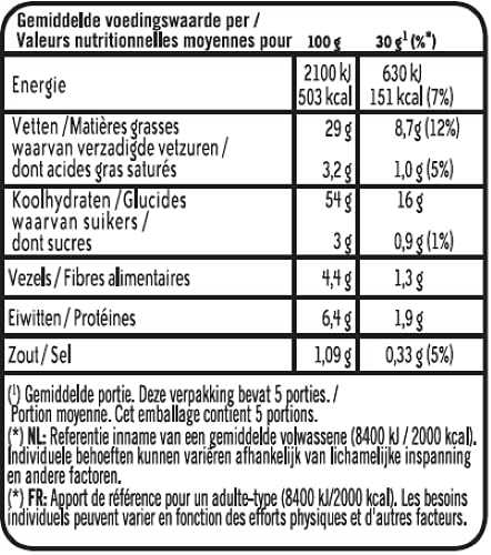 Bevat 9 zakken van 150 g per doos, elke zak bevat 5 porties
