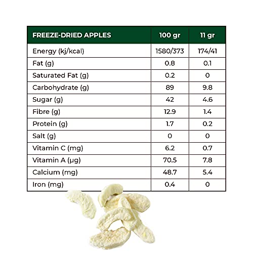 🍏 EEN HOOG VEZELS WEG NAAR 5 PER DAG: Het enige waar iedereen op voedingsgebied het over eens kan zijn, is dat het een goede zaak is om meer fruit en vezels te krijgen! Onze gevriesdroogde appels zitten boordevol vitamine C en vezels en maken het halen van je 5 per dag makkelijk EN heerlijk!
