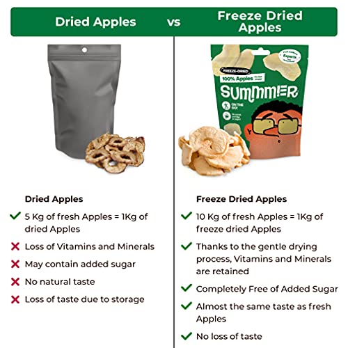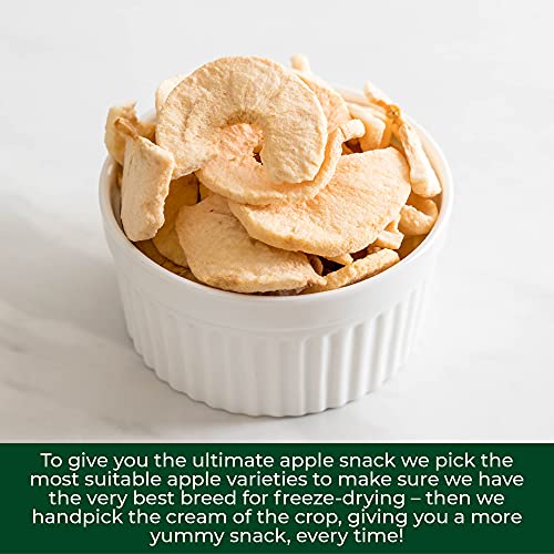 🍏 WE GEBRUIKEN ALLEEN DE BESTE APPELS: Om u de ultieme appelsnack te geven, kiezen we de meest geschikte appelrassen om er zeker van te zijn dat we het allerbeste ras hebben om te vriesdrogen. lekkere snack, elke keer weer!
