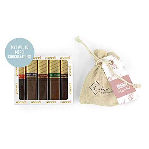 Om zomaar iemand te verwennen! Of wanneer je wel een reden hebt om iemand te verrassen! Het Merci Verwenpakket van THNX is gemaakt voor plezier. Je kunt de heerlijke Merci Chocolade zien zitten in het doosje dat in de THNX geleverd wordt. Ook zit er een zakje met bloemzaad in het doosje. Met het roze Pink Blossom ontwerp zullen alle verdere items in dit cadeau worden bedrukt. Naast de 10 Merci chocolaatjes in het doosje, zit er ook een zakje met zonnebloem zaadjes in + zaaitablet. Tekst op de wikkel: Speciaal voor jou!. Tekst op het kaartje: Veel Liefs. Tekst op het zakje: Merci dat jij er bent.