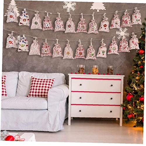 -Pakket bevat 24 xmas adventskalender zakken, 24 adventsnummerstickers, 24 houten clips, 10m jute touw