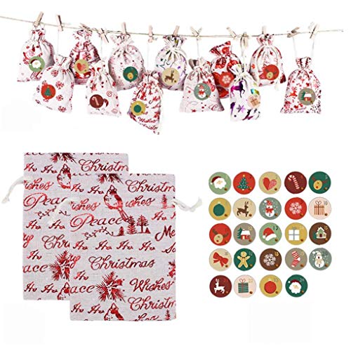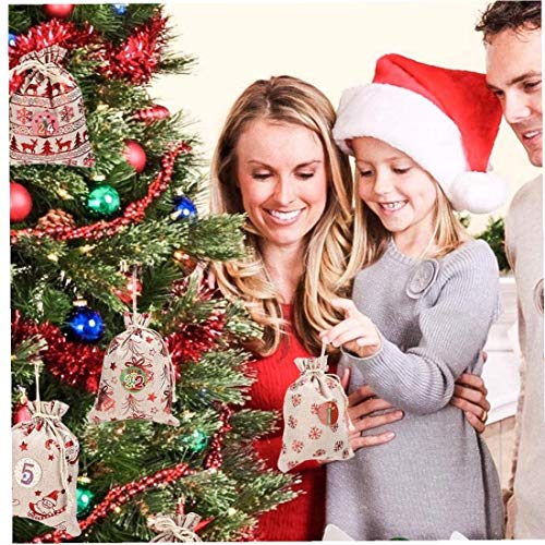 Kerst adventskalender tas is perfect voor kerst home decor. Je kunt deze adventskalenderzakken op verschillende manieren ophangen, voldoen aan je allerlei kerstdecoratiebehoeften. Het gezin opent elke dag een jute tas tijdens de Advent en vindt geschenken in elke zakdoekzak. 24 Pack Xmas Advent Calendar Bags creëren zeer creatieve kerst countdown ceremonie.